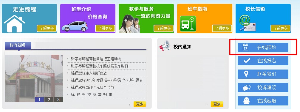 b,百度【張家界錦程駕�!�,進(jìn)入到錦程駕校的官網(wǎng)http://www.redsequence.com,選擇【在線預(yù)約】。