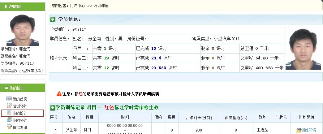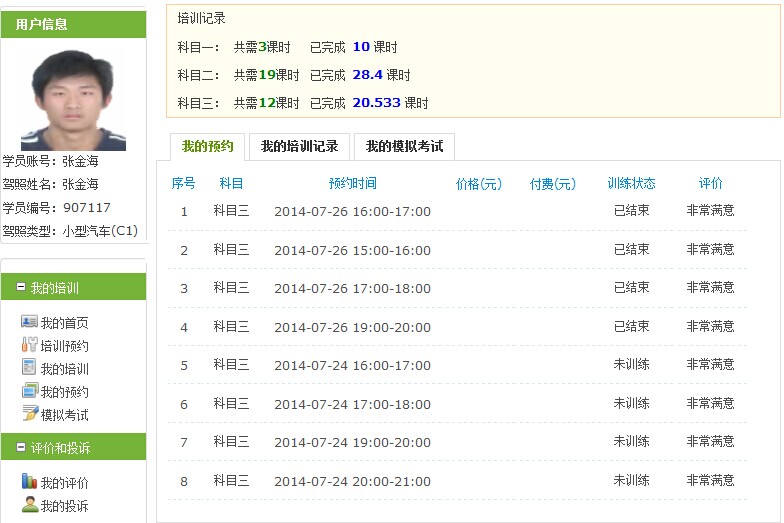 3.1 用戶信息:可以看到學(xué)員的賬號、姓名、編號以及駕照類型,可再次確認(rèn)個人身份。