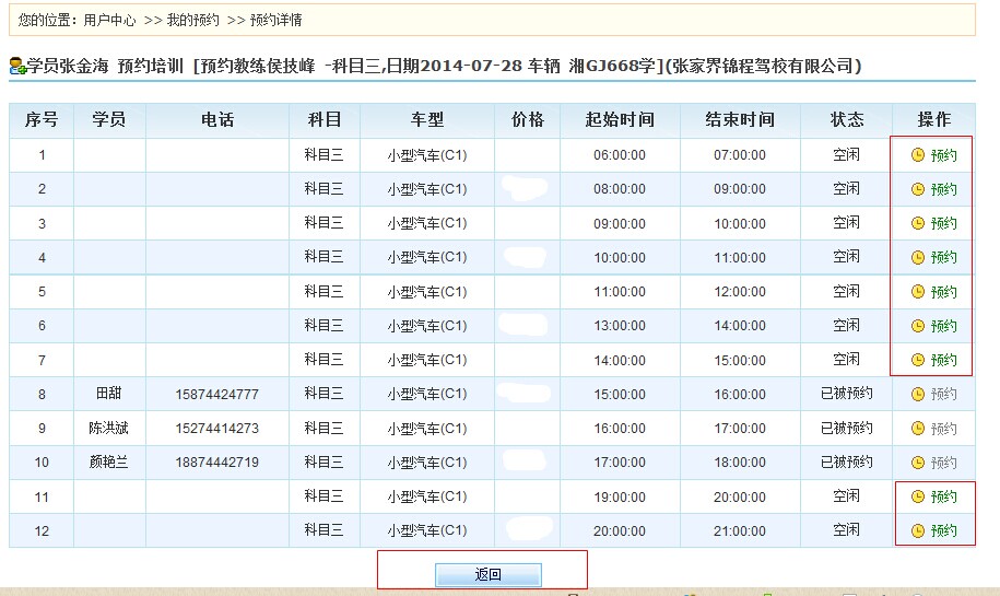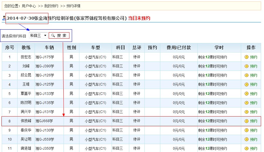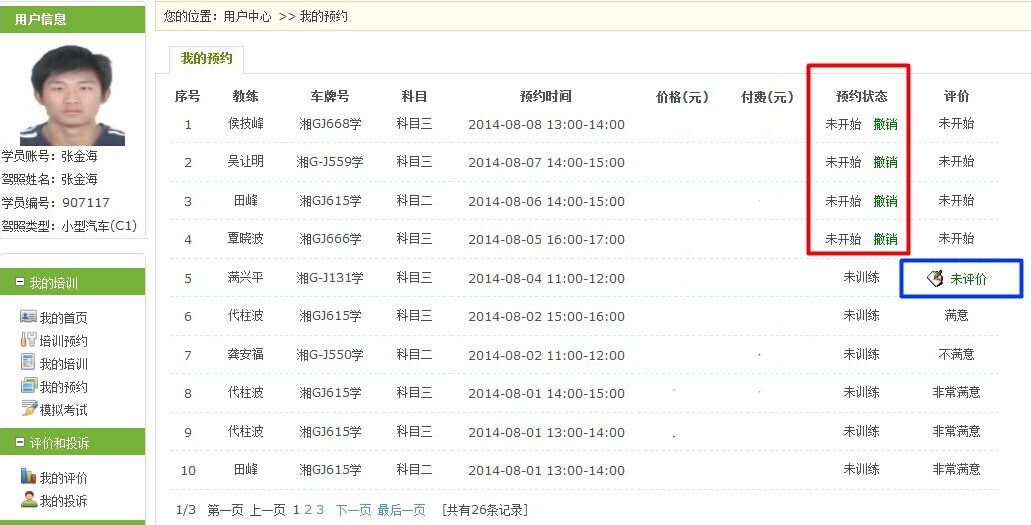 注:欠費不能再次預(yù)約,不評價教練不能再次預(yù)約。
